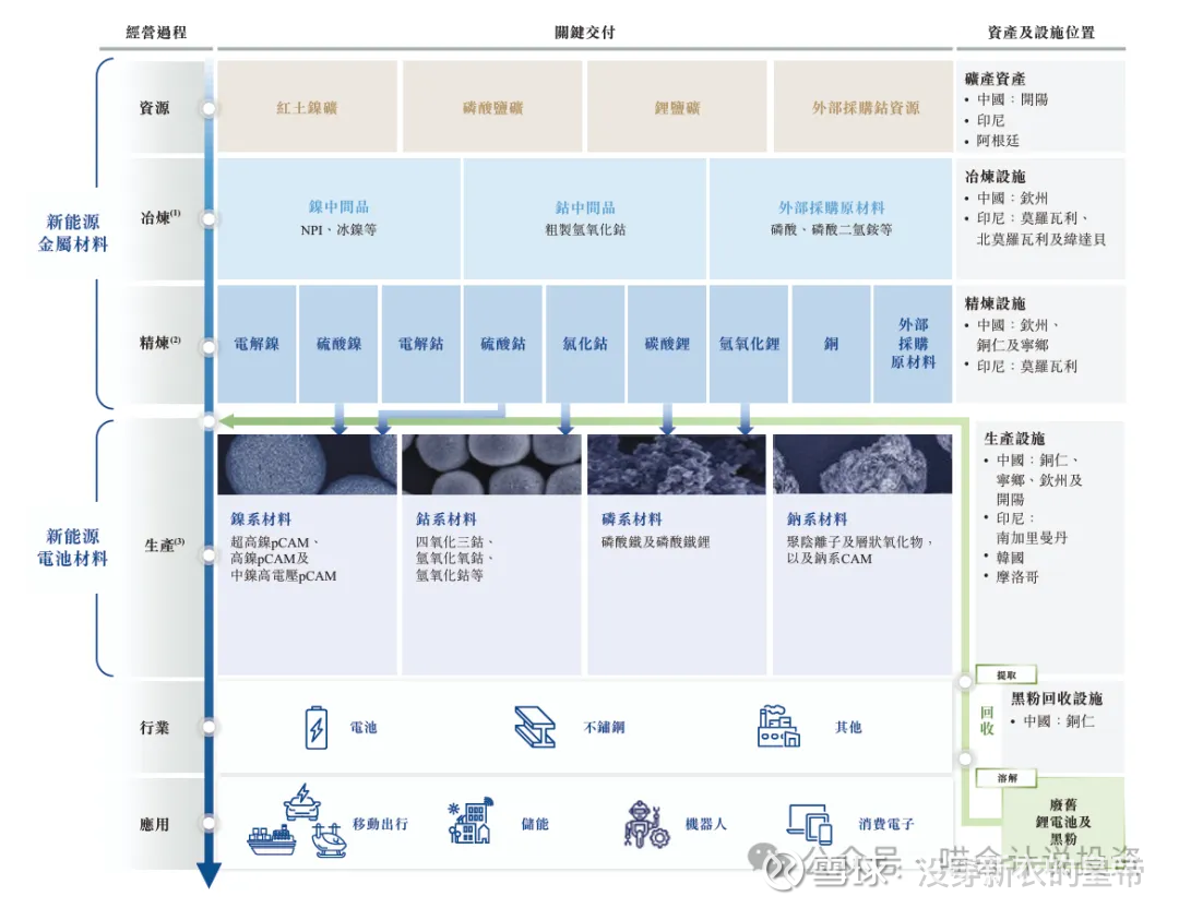 公司能够提供全面的产品矩阵,包括镍系、钴系、磷系、钠系和其他创新新能源电池材料,以及新能源金属产品。如下图: