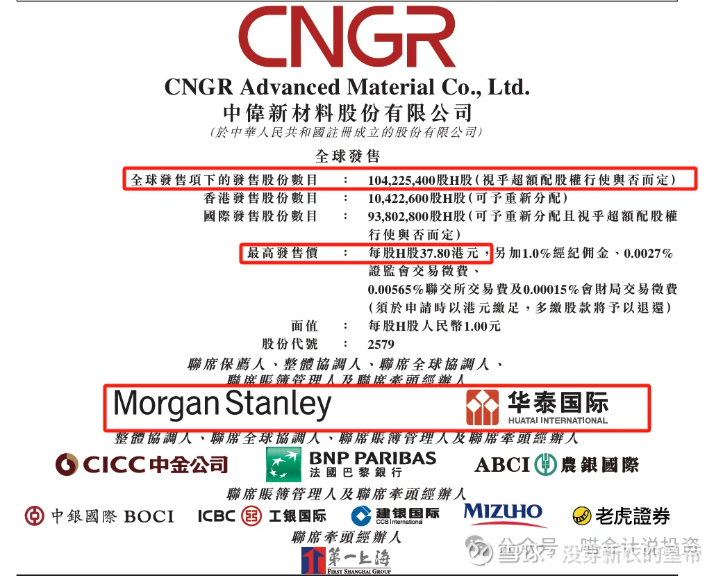 中伟新材(02579.HK)于2025年11月7日至11月12日港股招股,本次全球发售1.04亿股H股,其中香港公开发售占10%、国际配售占90%,并设有15%超额配股权,发行股份占上市后总股份的10%;发售价区间为每股34.0-37.8港元。公司引入9名基石投资者,包括贵州新型工业化基金、宝达投资、中创新航、蓝思香港、欣旺达等上下游及投资机构,合计认购占比44.40%,本次IPO由摩根士丹利亚洲有限公司与华泰金融控股(香港)有限公司担任联席保荐人。