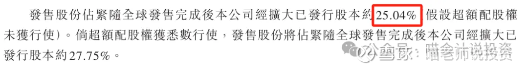 新发行占总股本的25.04%,比例挺高的,不过融资金额才1.253-1.480亿港元。