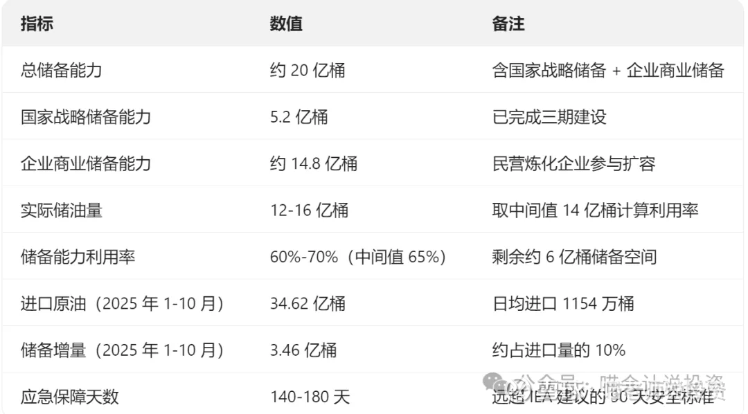 中国战略石油储备达13亿桶,加上商业库存,能满足约180天消费需求,远超国际能源署90天的安全标准。
