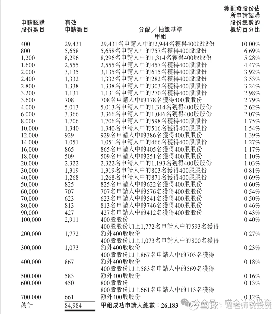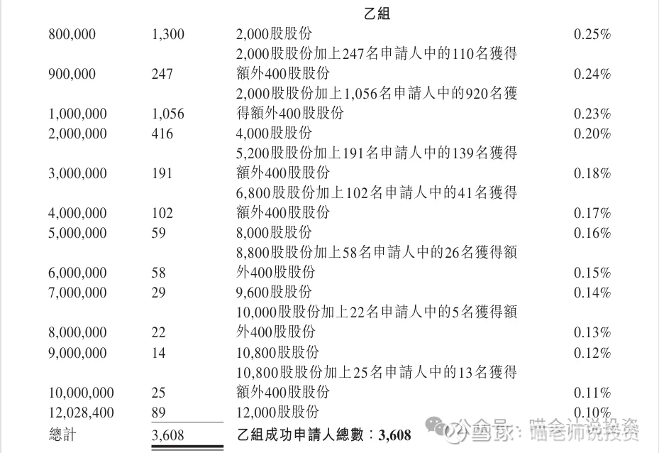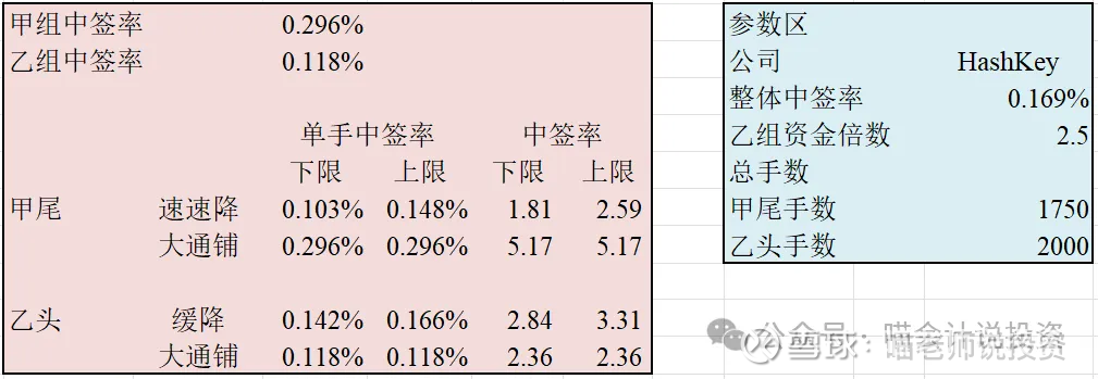 这次总申购资金665亿,乙组申购资金为甲组的2.3倍(喵老师预判哈士奇为副票,预估的2.5倍),甲组分配为速降,乙组分配也是速降。