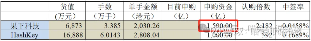 乙组申购资金为甲组的2.3倍,甲组单手中签率2.358‰,乙组单手中签率1.026‰;
