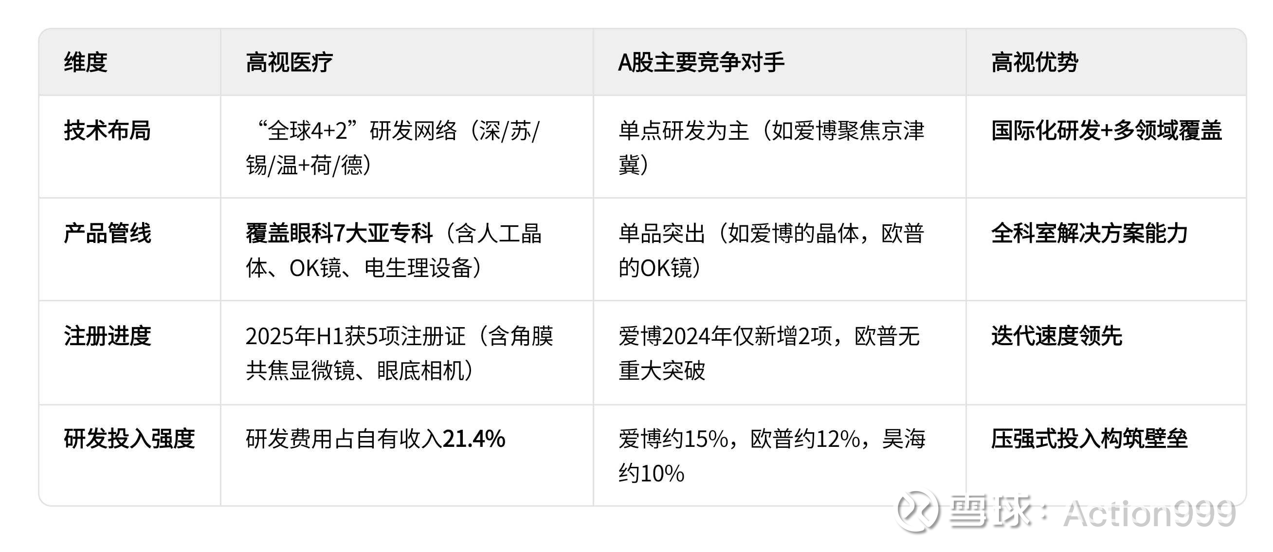研发网络:"全球4+2"布局:深圳(人工晶体/手术设备)、苏州(OK镜/RGP)、无锡(诊断设备)、温州(造影设备)及荷德基地。