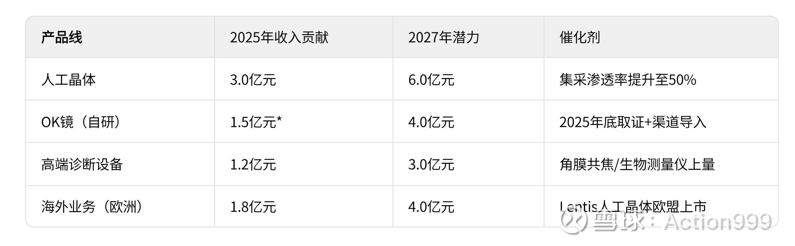 在研管线:OK镜(预计2025年底获批)、离焦镜(已上市)、多功能角膜地形图(2026年上市)。