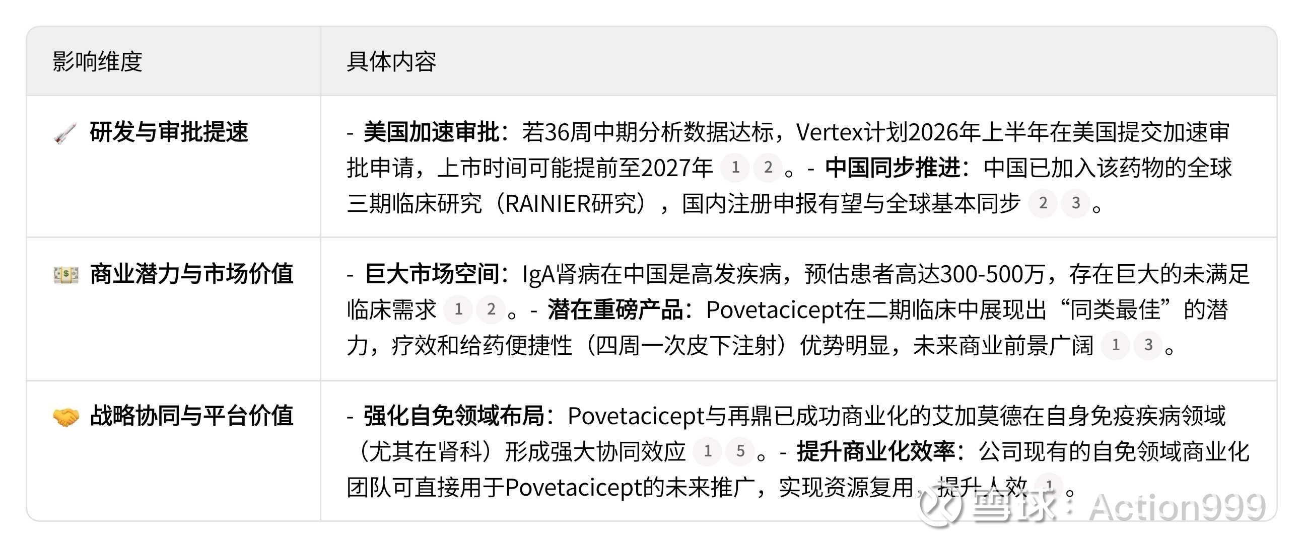 再鼎医药的协同效应:对再鼎医药而言,Povetacicept与其已成功商业化的艾加莫德(FcRn抑制剂)在自身免疫疾病领域,特别是肾科,能形成强大的产品组合效应,提升整体商业效率。