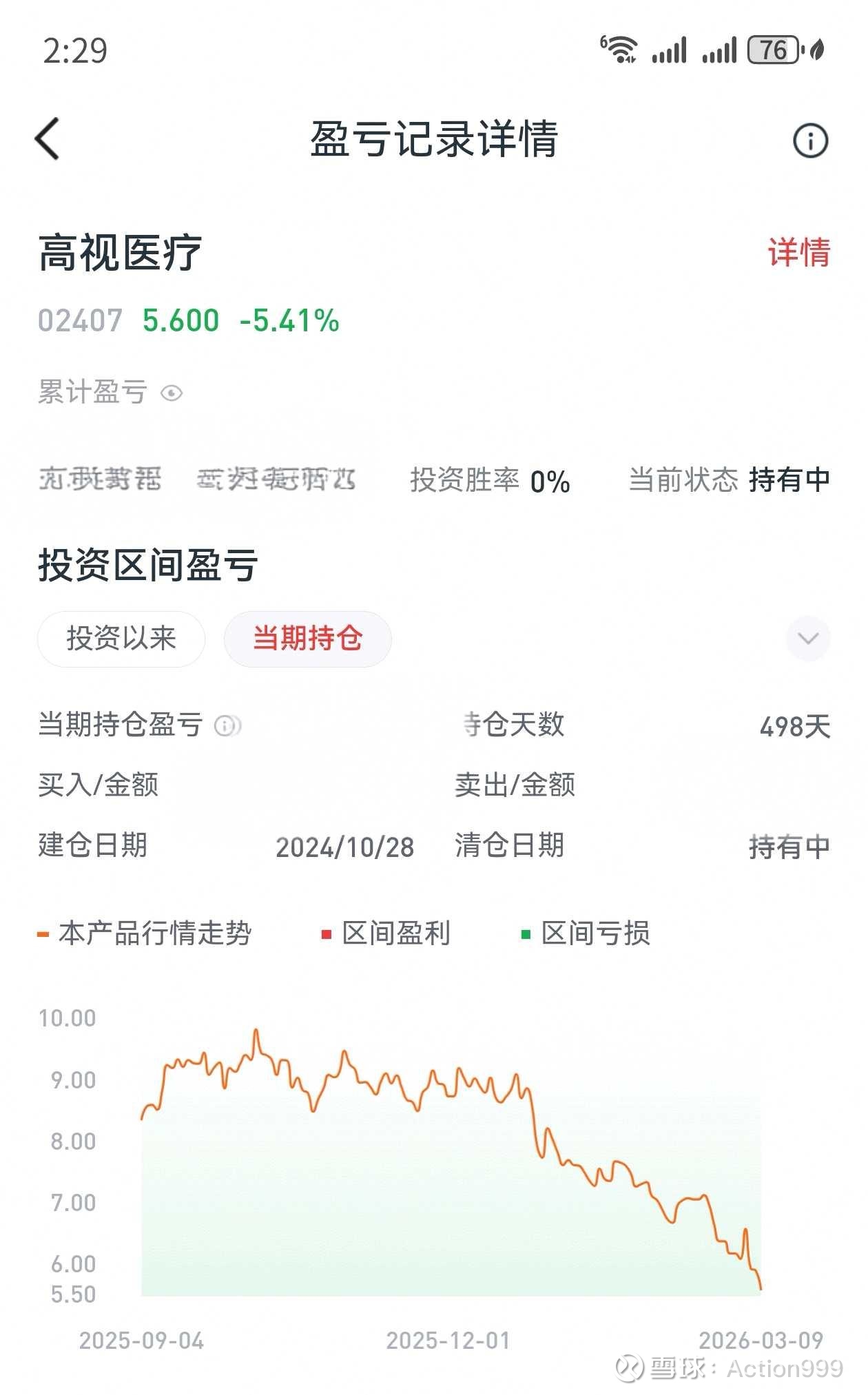 高视医疗10港元左右持仓成本,退通后最低跌到4.5港元左右,25年财报发出后反弹至10港元左右;现又持续下跌到5.6港元;退通后至今一股没卖。