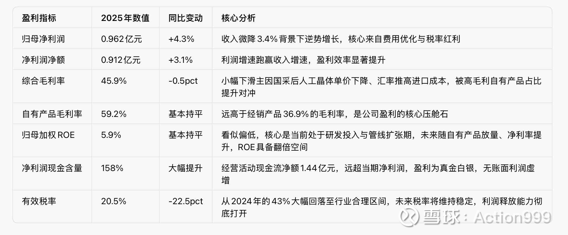 核心业务并未恶化,反而持续优化:2025年营收微降3.4%,完全是经销设备业务的短期拖累,而代表公司核心竞争力的自有产品同比增长14.3%、耗材增长15.7%、技术服务增长5.3%,高毛利、高成长的业务占比持续提升,基本面并未恶化,反而在向更健康的结构转型;
