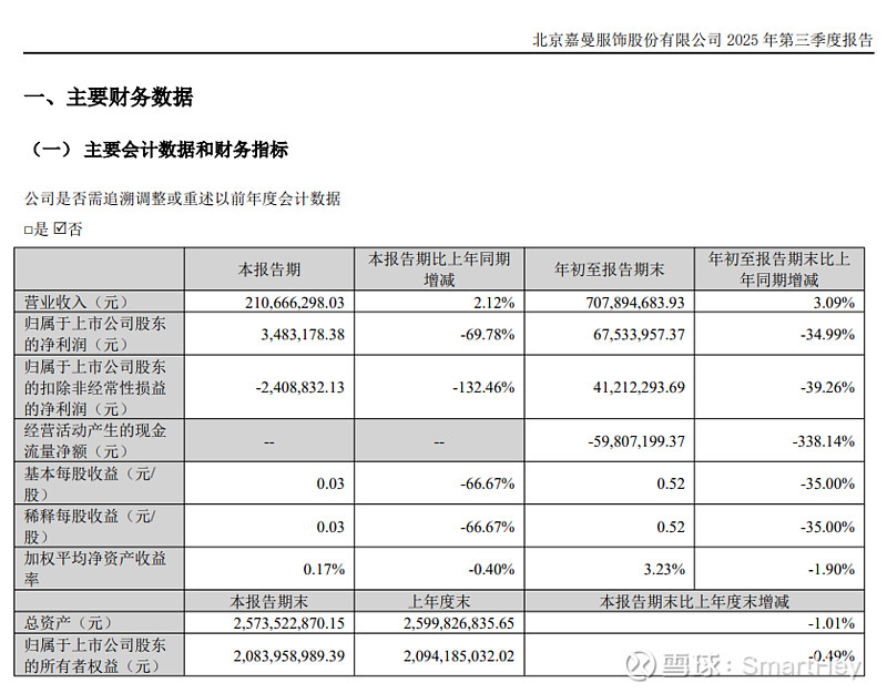 图源:北京嘉曼服饰股份有限公司2025年第三季度报告