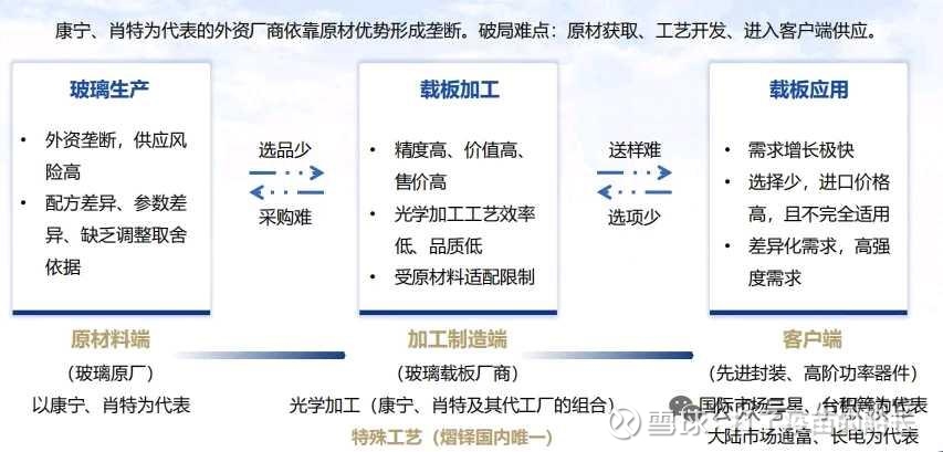 该行业目前看都是美国康宁,德国肖特等垄断为主,也是半导体领域的一个卡脖子技术。