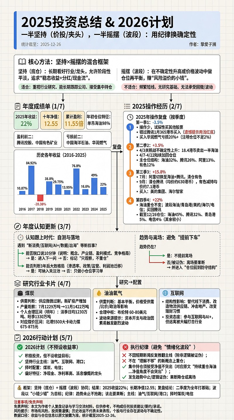 年末持仓前三名: 中国海洋石油(00883)、腾讯控股(00700)、青岛港(601298),上述3支股票占总仓位80%。