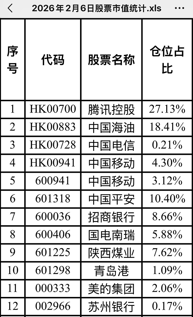 仓位:移动7%,电信0.2%