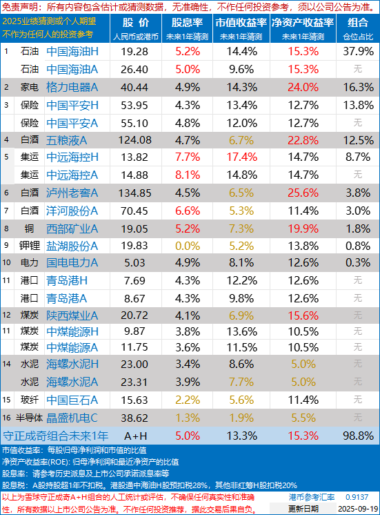 【正在关注】下面是雪球守正成奇A+H组合正在关注的自选股,我更看重“买得低”,即高市值收益率的企业。