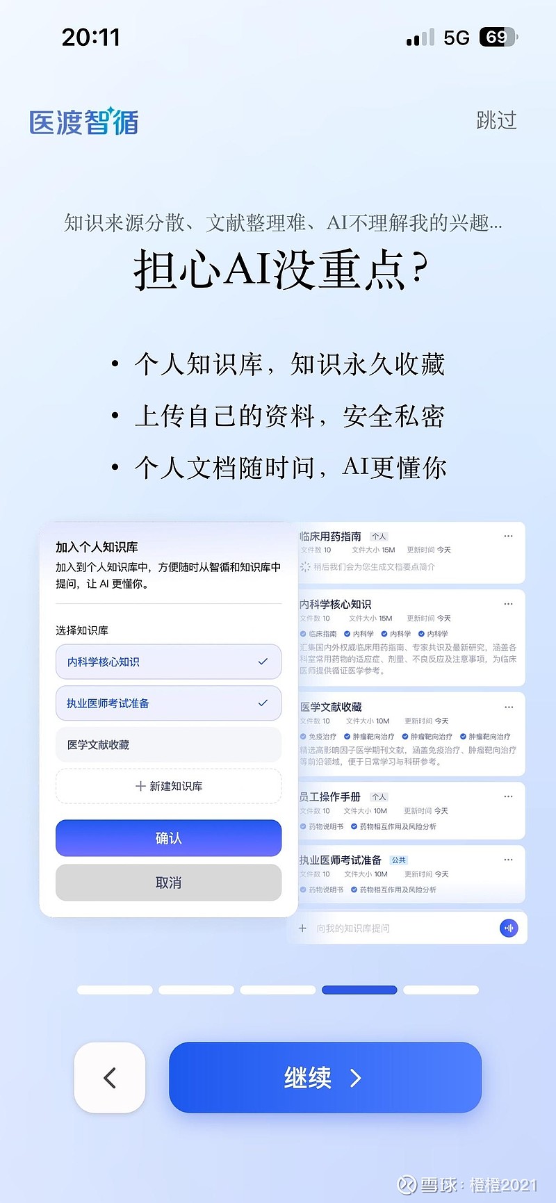 更贴心的是,“个人知识库”功能如同专属“移动书房”,支持医生收藏、上传认可的指南文献,按个人习惯分类整理及提问,形成个性化知识空间。