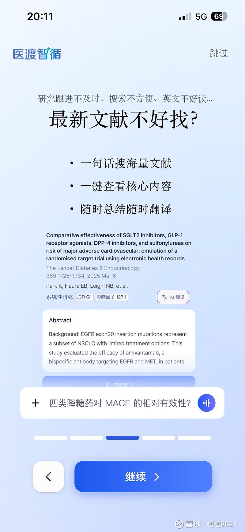 对医生而言,医渡智循是兼顾效率与个性的“超级助手”。医渡智循构建了覆盖超3万部权威临床指南、500万余篇精选医学文献的循证知识库,联合人民卫生出版社等机构搭建标准化知识体系,并实时追踪全球权威期刊动态。无论是门诊开药、查房决策还是病例讨论,医生只需输入临床问题,即可秒级获取精准结论。