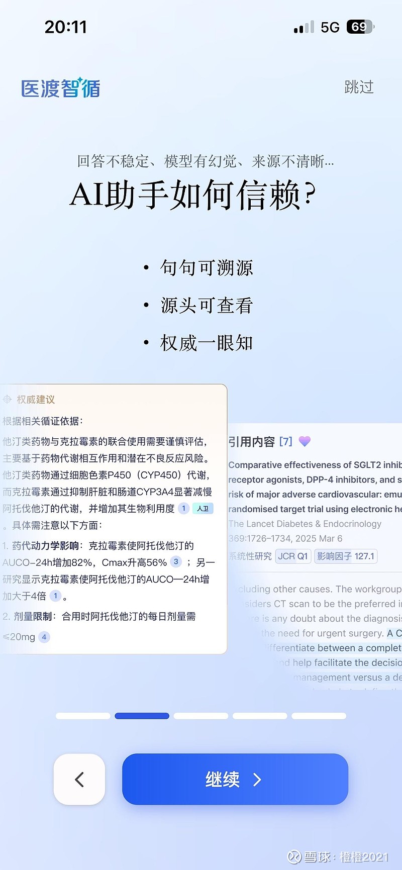 医渡智循坚守“句句可溯源”的准则,每一条结论都配有“证据身份证”,支持一键回溯原文;同时参照GRADE国际循证分级体系对检索到的证据进行质量分级,并内置多重校验机制自动核查文献支撑,剔除无依据结论,从技术层面系统性降低“AI幻觉”风险。