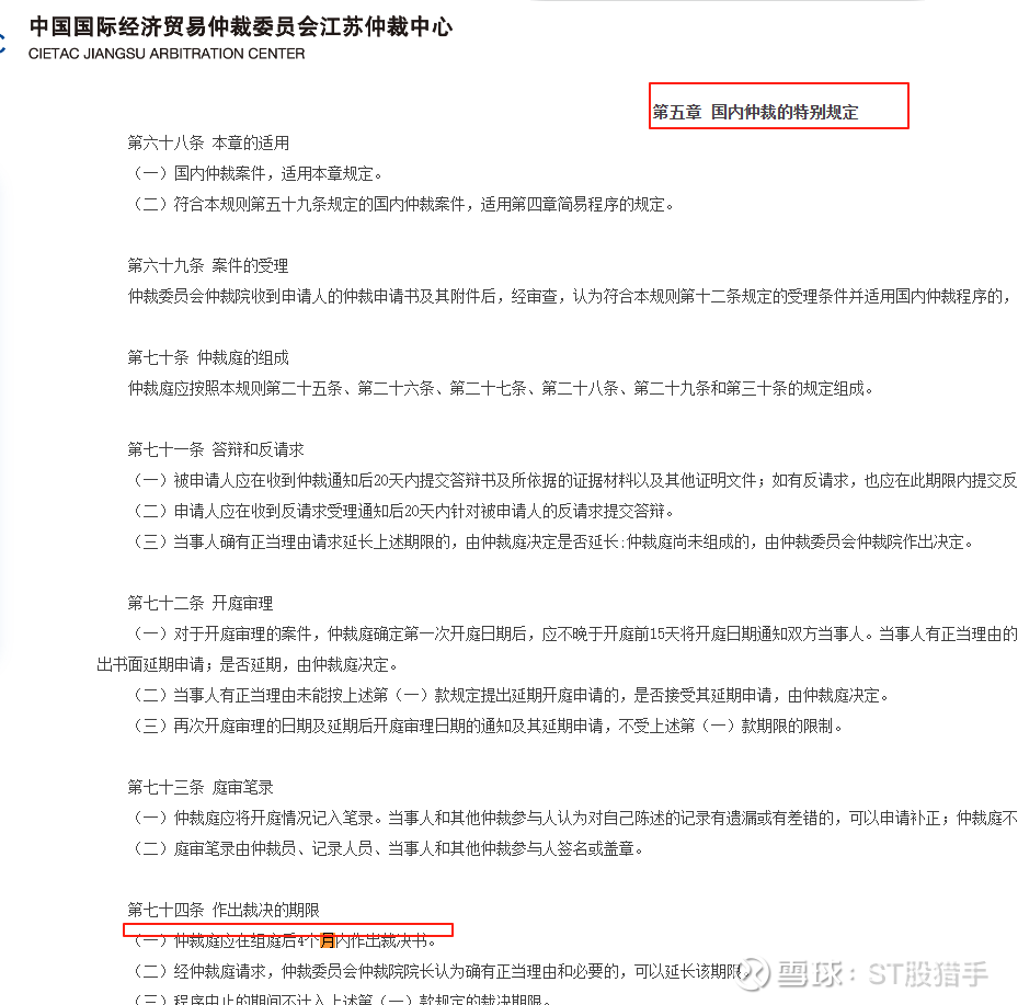根据 CIETAC 实务,普通程序案件从最终材料提交到裁决平均需2-4 个月。本案因涉及多方当事人(申请人为 ST 华鹏及海科控股,被申请人为山发控股),三人仲裁庭需协调不同意见,耗时可能接近上限。5月底提交完所有资料。目前已过3个月。