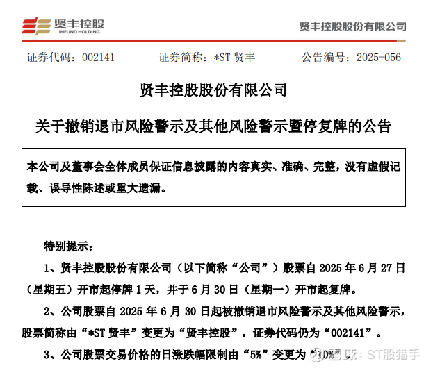 贤丰控股这波保壳方式成功撤销退市风险警示摘帽,为其他同样因营收不达标的上市公司提供了教科书级别的操作指南。