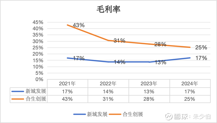3.1 新城的毛利率较为稳定,21年17%,22,23年略有下降,现在又回到了17%。