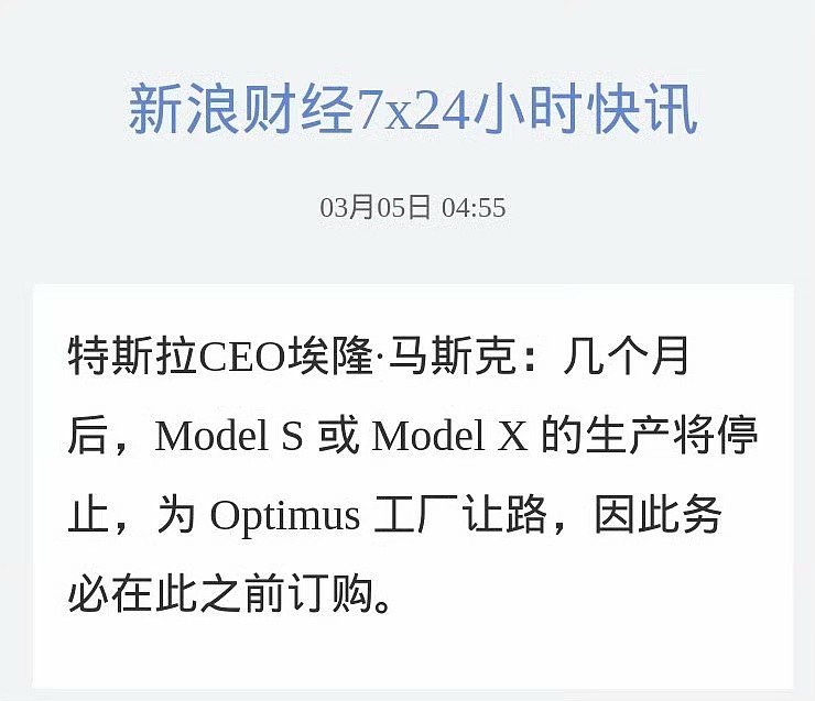 几个月后将停产,让产能给到optumus
