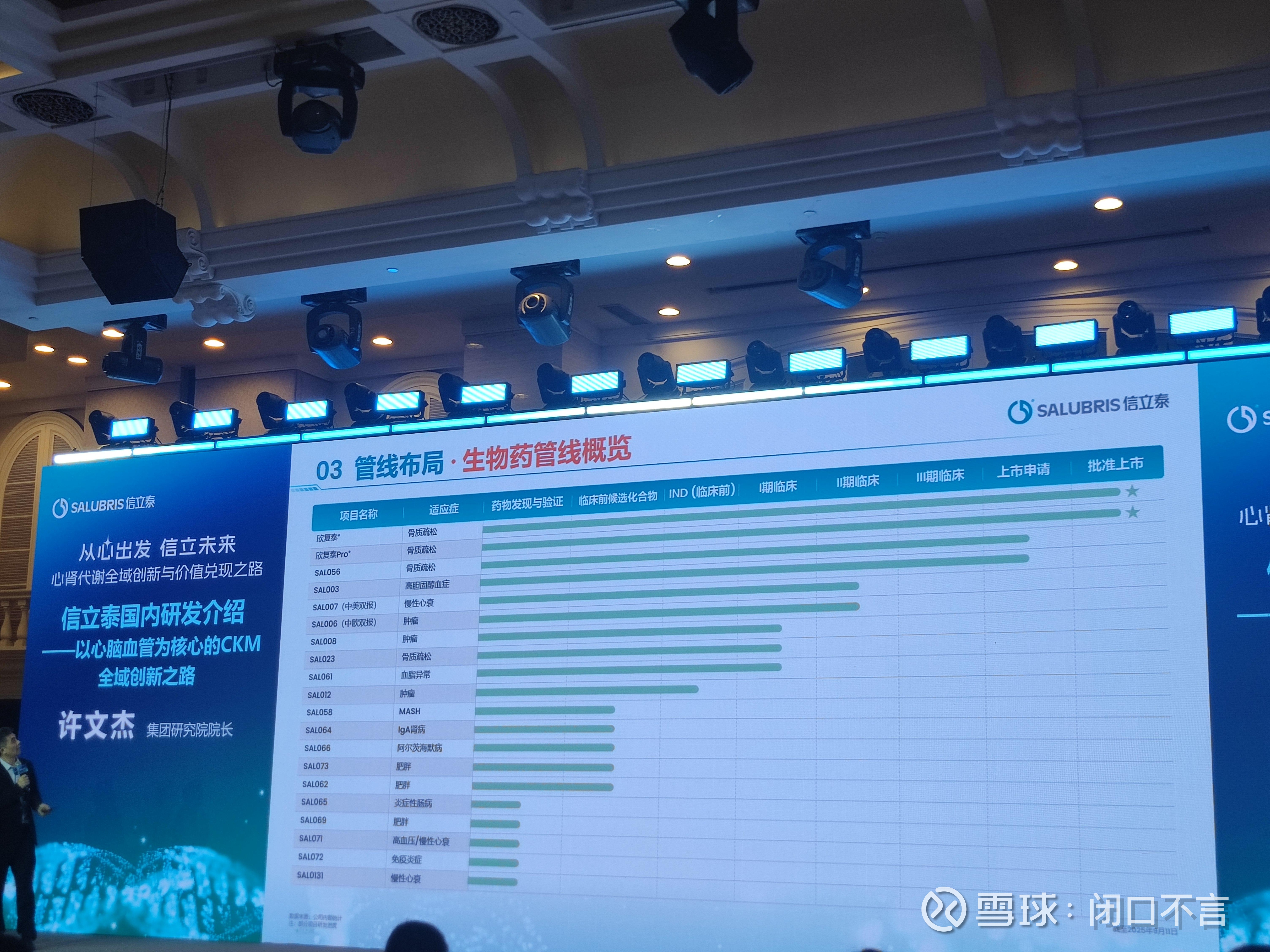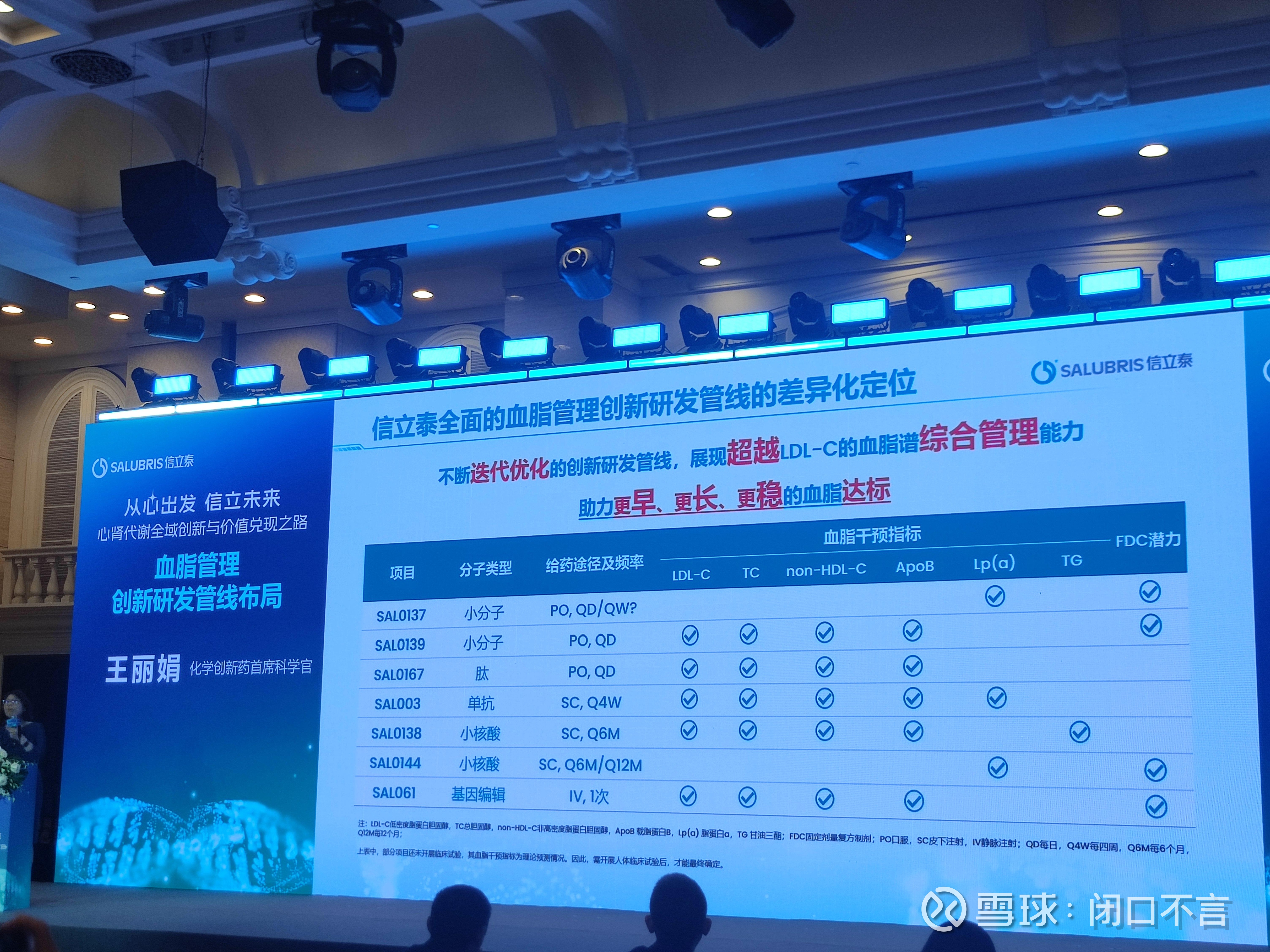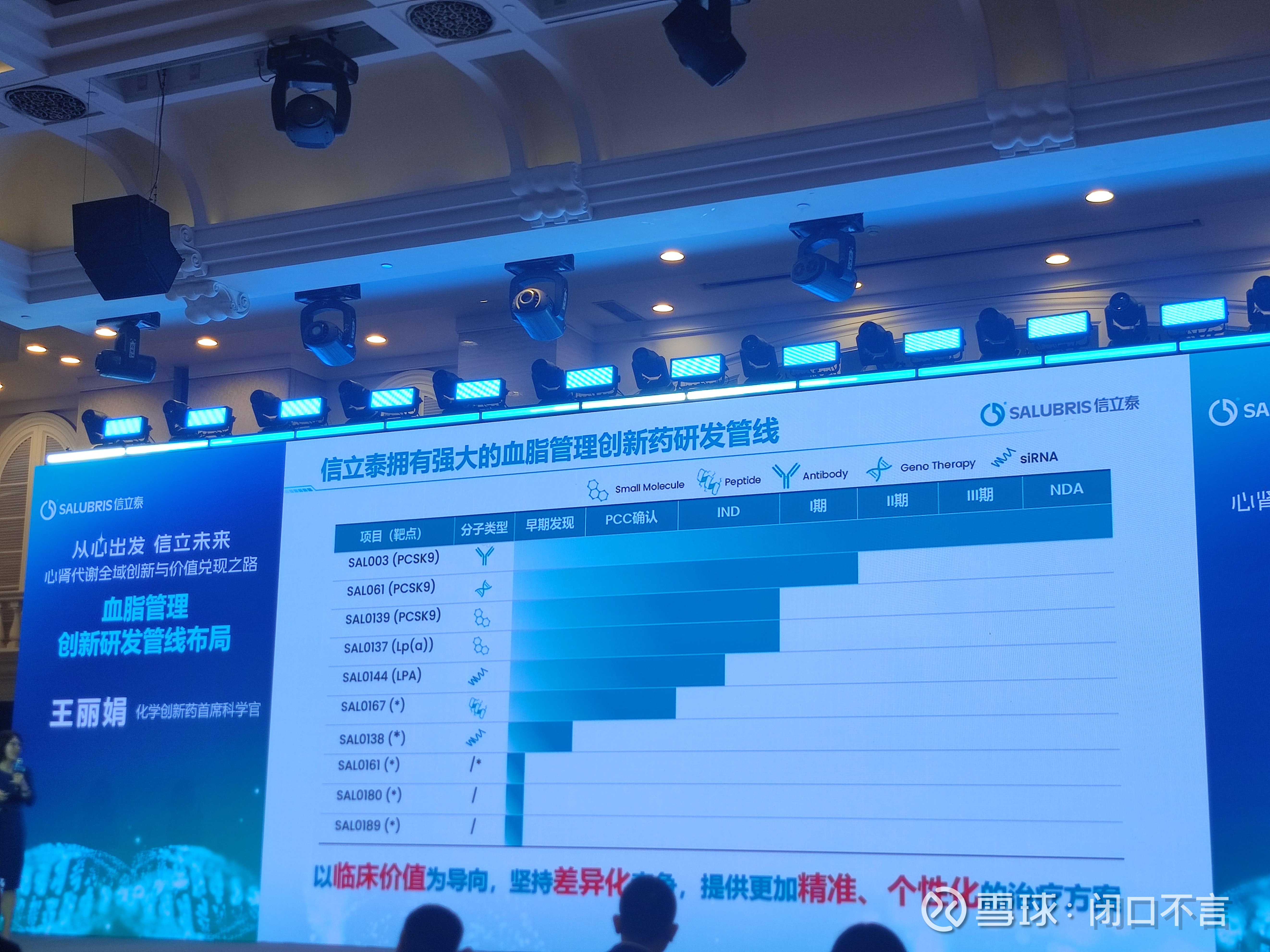 从单抗(SAL003)环肽,基因编辑(SAL061),小分子(SAL0139),和双靶点siRNA(SAL0138),全面覆盖。虽然进度不是最领先,也在比较靠前,发现别人的问题,解决别人的问题,满足未被满足的临床需求。礼来很多项目也不是最靠前。