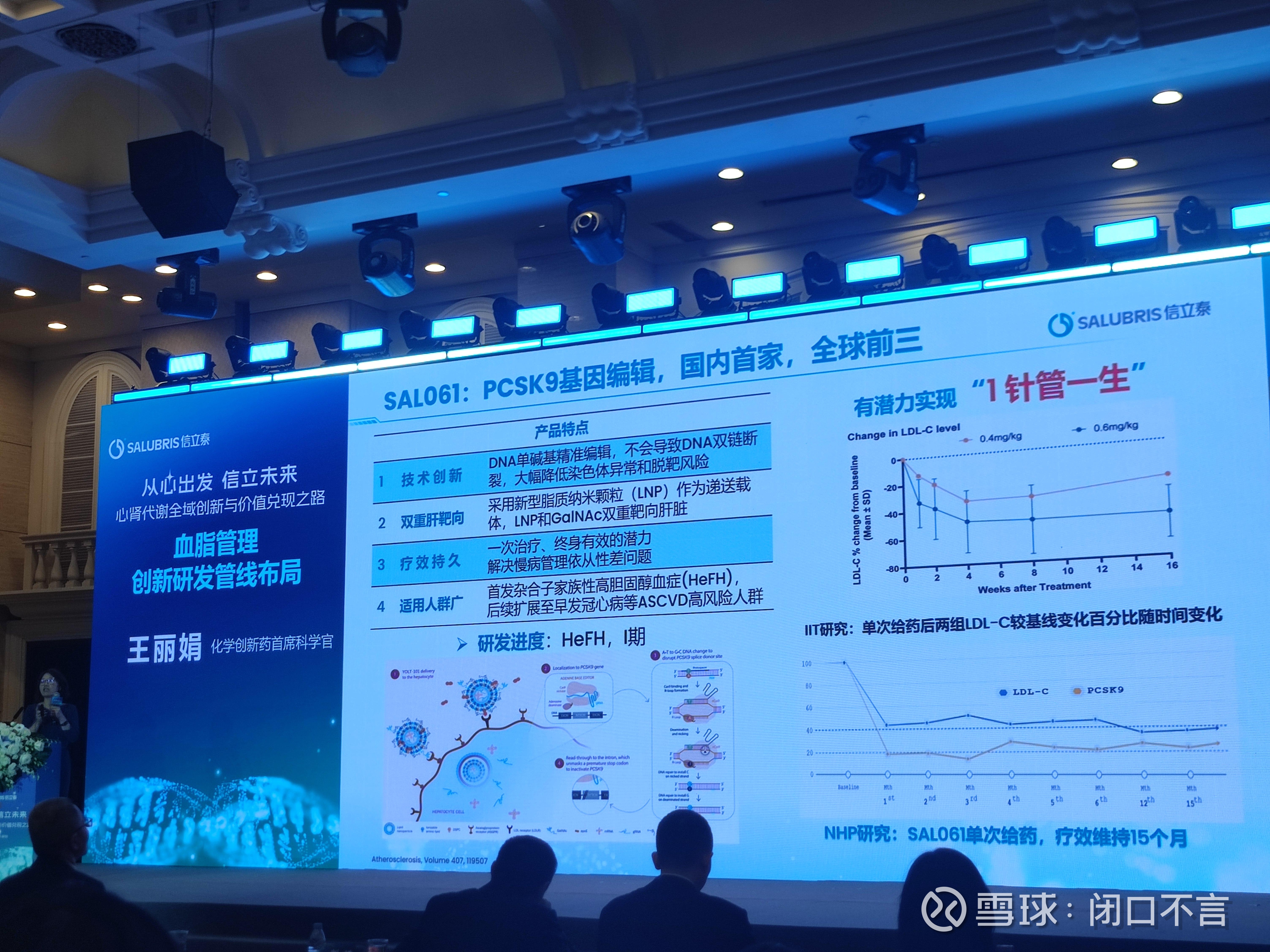引进的基因编辑产品(SAL061)。这个产品最最关键是安全性。大家不需要太care,只要持续关注就可以了。毕竟CDE对基因编辑产品特别关注安全性。算是吃螃蟹的。