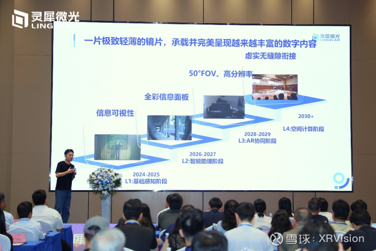 面对消费级AR市场纷繁的技术路线与产品定义,灵犀微光创始人郑昱在发布会上首次提出了行业前瞻性框架——“消费级AR眼镜L1-L4四级发展体系”。该体系以技术成熟度、用户体验与场景适配为核心维度,为产业勾勒出从基础工具到空间计算平台的清晰演进路径: