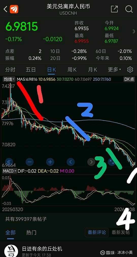 二季度,人民币贬值最疯狂的节点,股市大跌,那时候指出,国债,汇率,美元,美债,信心等宏观问题,带头抄底。随后汇金救市,开始新的行情。这一段是人民币快速升值过程。红色1