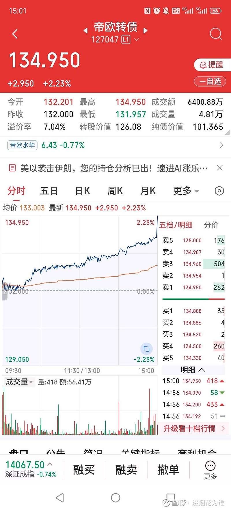 尾盘集合竞价,转债突袭,但是这笔成交量不大,可能是多个像我这样的“小卡拉米”在关注博弈