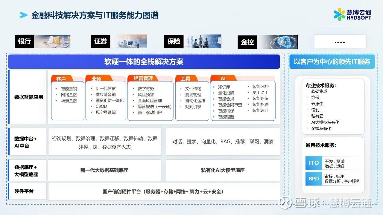 慧博云通的金融业务以“让数据智能无所不在,新一代金融科技玩家”为使命,帮助金融机构实现从信息化向数字化、智能化的蜕变,打造数智原生的新一代数实融合解决方案。