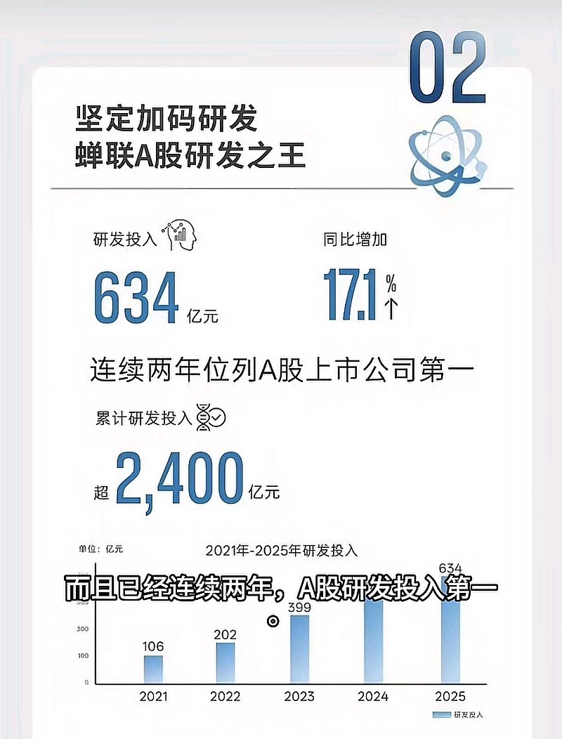 $比亚迪(SZ002594)$ 比亚迪研发投入了634亿,这么多年以来一共投入2400多亿进行研发,怎么还有人觉得他只是一家普通的汽车制造公司?这妥妥的是一家高科技公司啊,跟华为一样的,华为买不到吧,比亚迪你可以敞开了买,看过王传福的一个采访视频,他说如果追求个人财富,单做电池就足够了,他要做的是用技术报国,这爱国格局谁有?我想到的是任正非。华为和比亚迪,中国民营企业的巨人。
