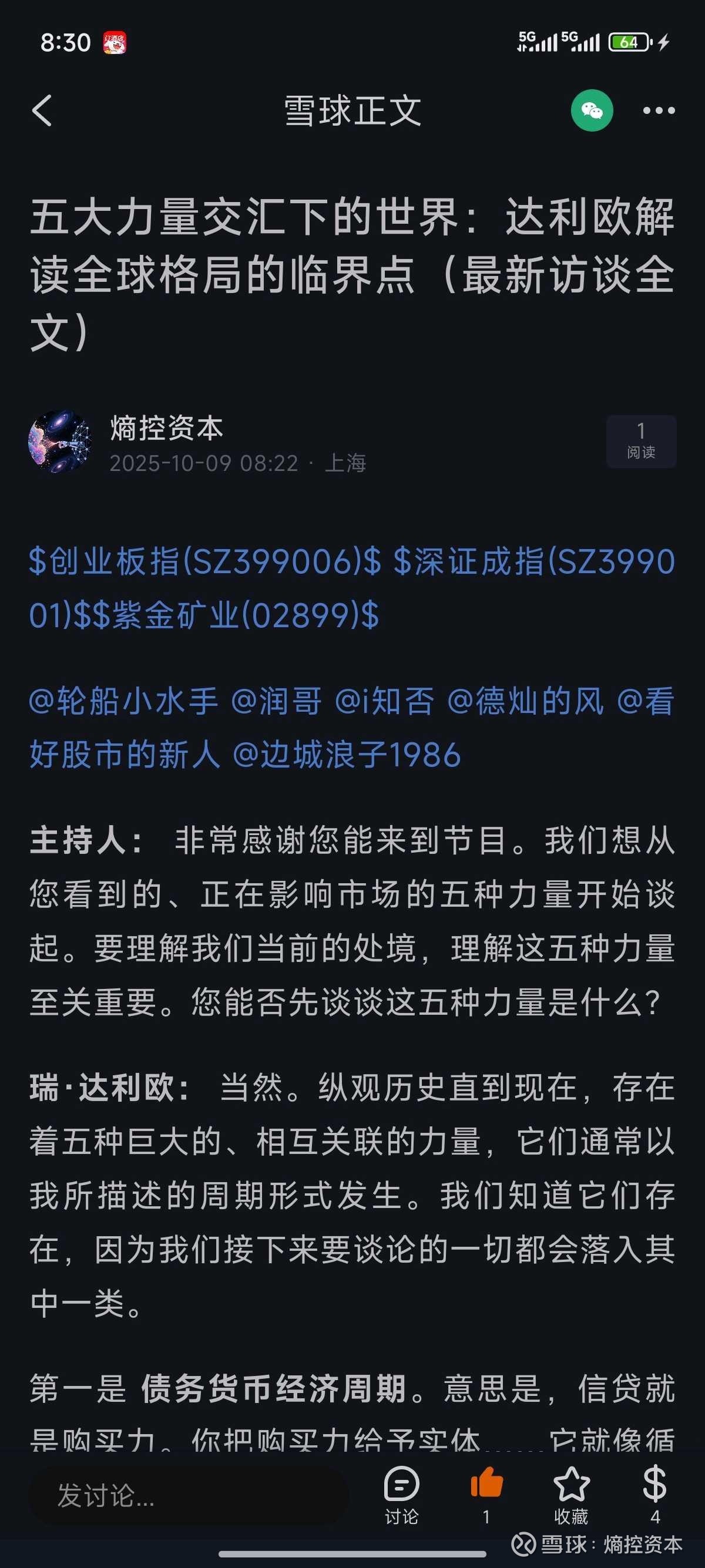瑞·达利欧认为,驱动当前市场和全球局势的核心力量有五个,它们历史上反复出现且相互关联: