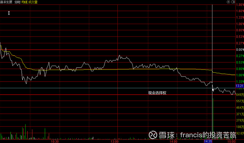 4、根据镇洋发展的实际投票结果,笔者认为,对于流通股相对分散但希望重组成功的公司,在股东会前,力保公司股价高于现金选择权是非常重要且关键的一步!毕竟,方案被股东会否决还不如主动终止预案。而根据笔者估算,中金公司股权分散程度,远高于镇洋发展。由于本次重组级别极高,一旦有关部门核准就不可能终止重组,因此现在到4月初是最重要的股价观察窗口,也是主动终止重组高概率期。
