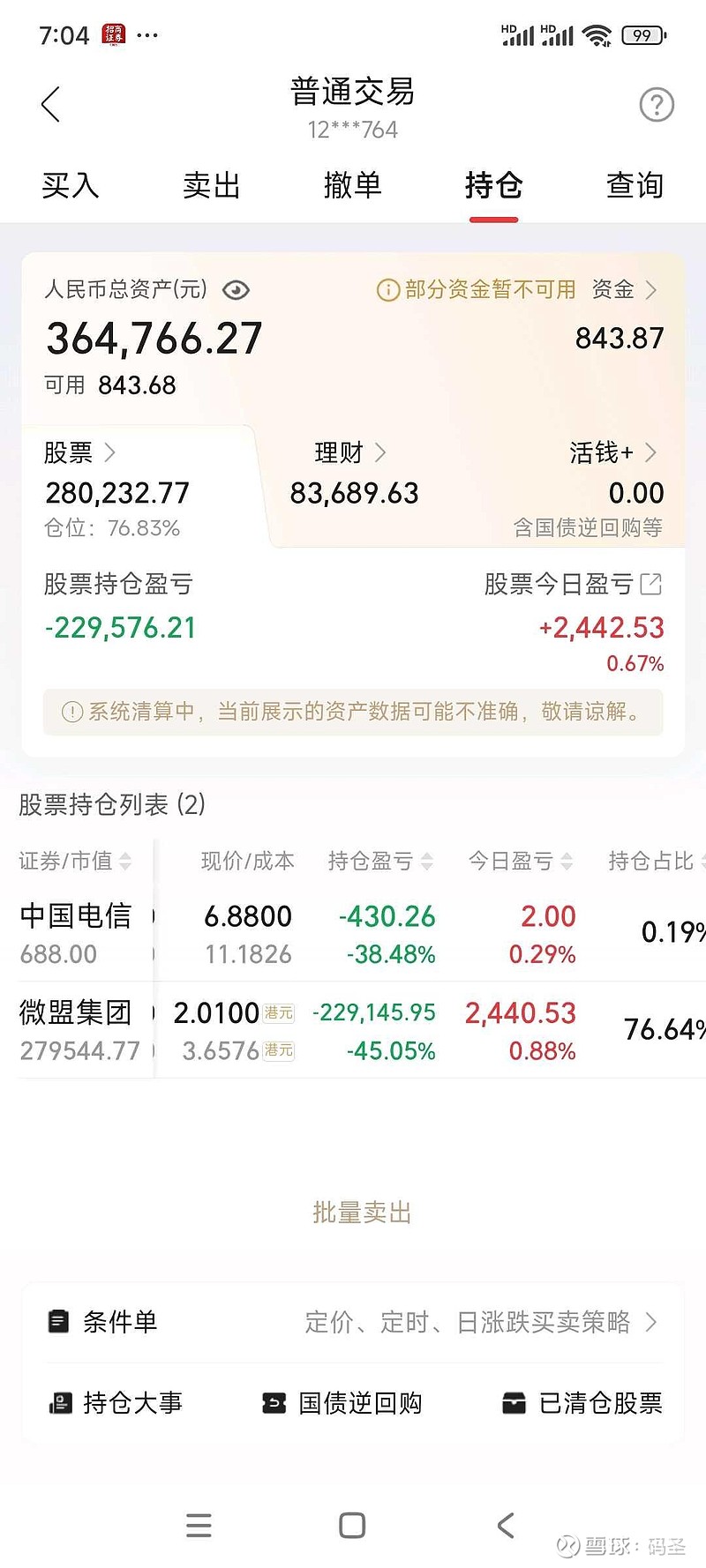$微盟集团(02013)$ 今天截图来了,2025年12月27日不操作一下!有人问我12月27日之后怎么操作,其实吧,每天截图也有点浪费时间,12月27日后看孙总怎么操作,他不套现我也就留着,毕竟2014年学微盟也做了11年微信生态开发了,我准备让全员开直播和视频号短视频,只用微信视频号直播不用抖音,直接做MCN机构,因为做编程教育类的我觉得视频号足够了。现在公司人数又回到个位数,微盟今年能盈利给了我极大信心,降本增效到极致,2026年增长我觉得也快了。只要孙老板不抛,我会继续持有,因为我还是看好这个行业的。可能不会每交易日截图,一周截图一次吧。