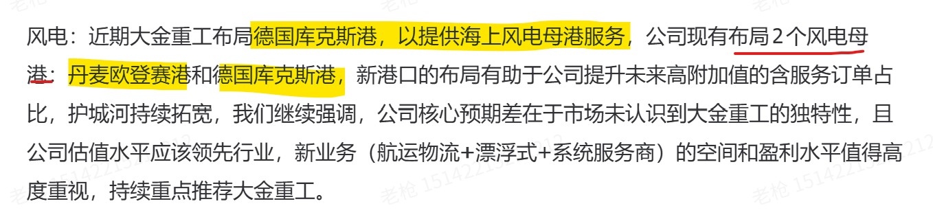 上个月宣布在德国新增一个风电母港,提供储运服务,对投标和交付是加分项。
