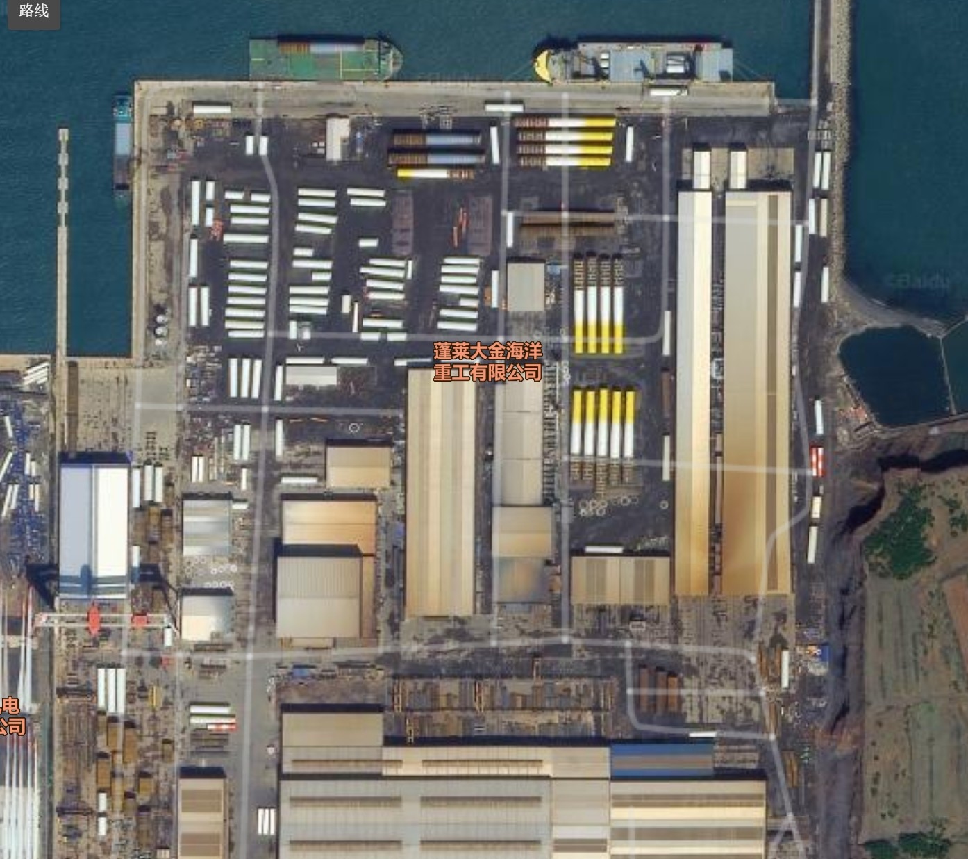 今天看卫星地图:蓬莱出口基地热火朝天,两艘船都正在装货 左边放好一根桩,右边正在吊装。