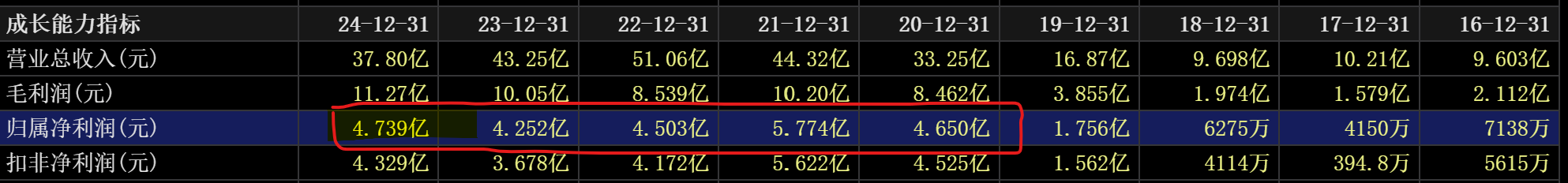 看过去5年,公司利润在4~5亿这个区间横盘。