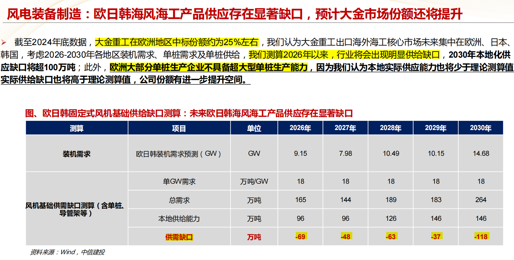 海外风机基础(单桩导管架等)的供需平衡表。如果缺口测算靠谱, 那么大金未来几年出海逻辑是无敌丝滑的。