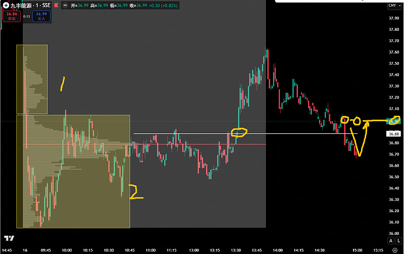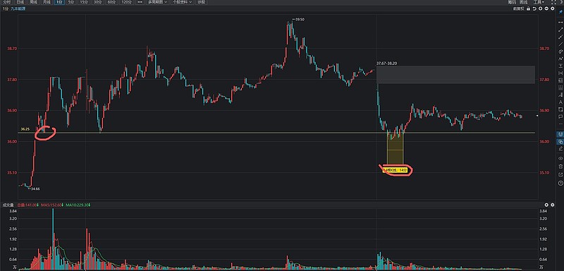 1.还是这张图。周五拉升段的地点+周一砸盘的低点36.24元确立的分水线,今天上午砸破后14分钟收回。这是流动性猎杀,让止损盘出现。这种行为,是用分时线吓唬散户,清洗一批。也是扎程序化对手盘的。