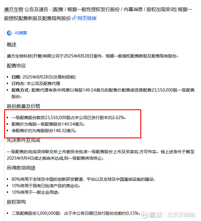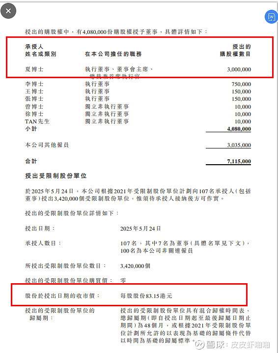 $康方生物(09926)$ 再带大家重温下创新药板块的股神夏老板去年的经典操盘!附带证据,事实陈述——5月份夏总以84.6港币行权价给自己发了300万购股权,8月28号夏总以每股149.54港币减持300万股,每股净赚60多港币,合计1.8亿多。减持正常吗,正常,18A很多都减持。但是重点戏来了,9月7号,你没看错只隔了9天,SMMT发布数据OS未达显著。发现了没,散户被临床数据洗礼的时候,我们的夏总已经净赚1.8亿。