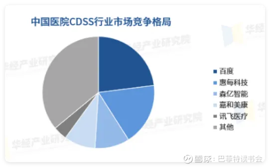 2024年中国医院CDSS行业市场规模约为5.76亿元。2023年中国医院 CDSS 市场份额,百度占比23%位居第一,惠每科技占比18%位居第二,森亿智能占比10%位居第三,嘉和美康占比9%位居第四,讯飞医疗占比4%位居第五。