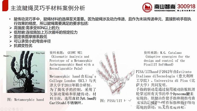 南山智尚通过优化工艺参数,已成功实现大批量生产级的超分子量聚乙烯纤维体系,具备服务机器人结构部件的性能边界。公司已向国内外头部机器人本体、 灵巧手 厂商完成送样,其中厂商已获得小批量订单。