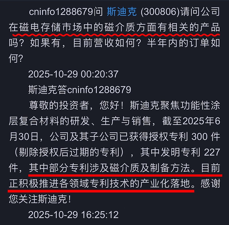 配合Hw,除了厂房建在哈勃投资边上,29日互动平台明确表示,涉及磁介质及制备方法,目前正积极推进各领域专利技术的产业化落地。