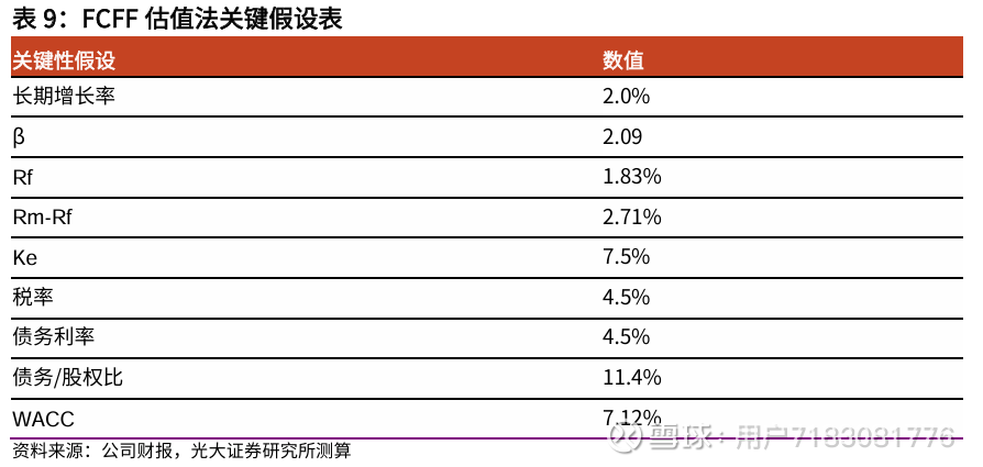 我们运用FCFF定价模型,基本假设说明如下:
