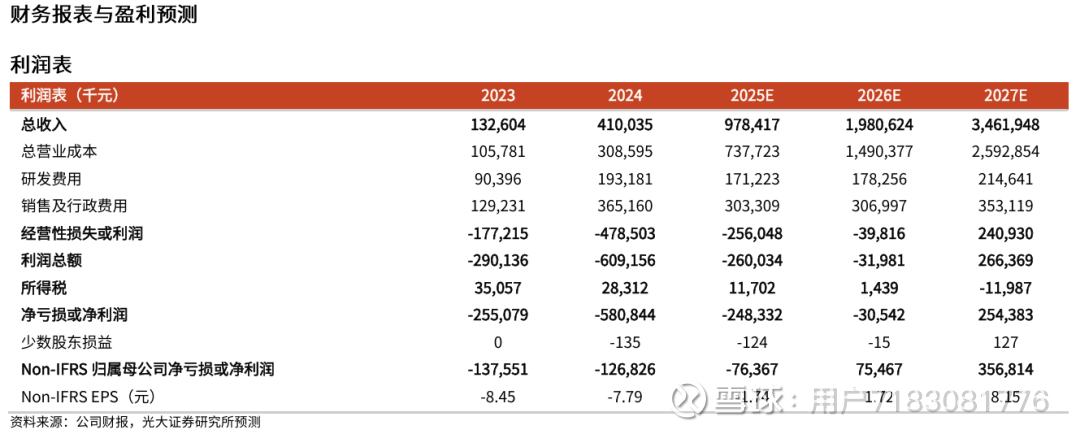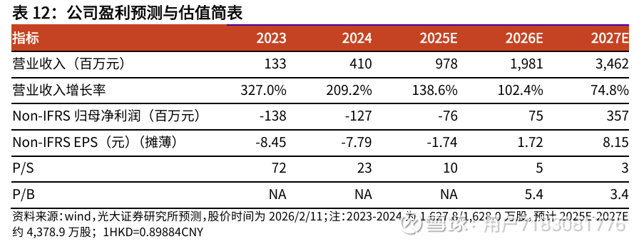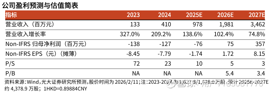 我们预测2025E公司Non-IFRS归母净亏损分别为0.76亿元(同比减亏39.8%),2026E-2027E公司Non-IFRS归母净利润分别为0.75亿元/3.57亿元。