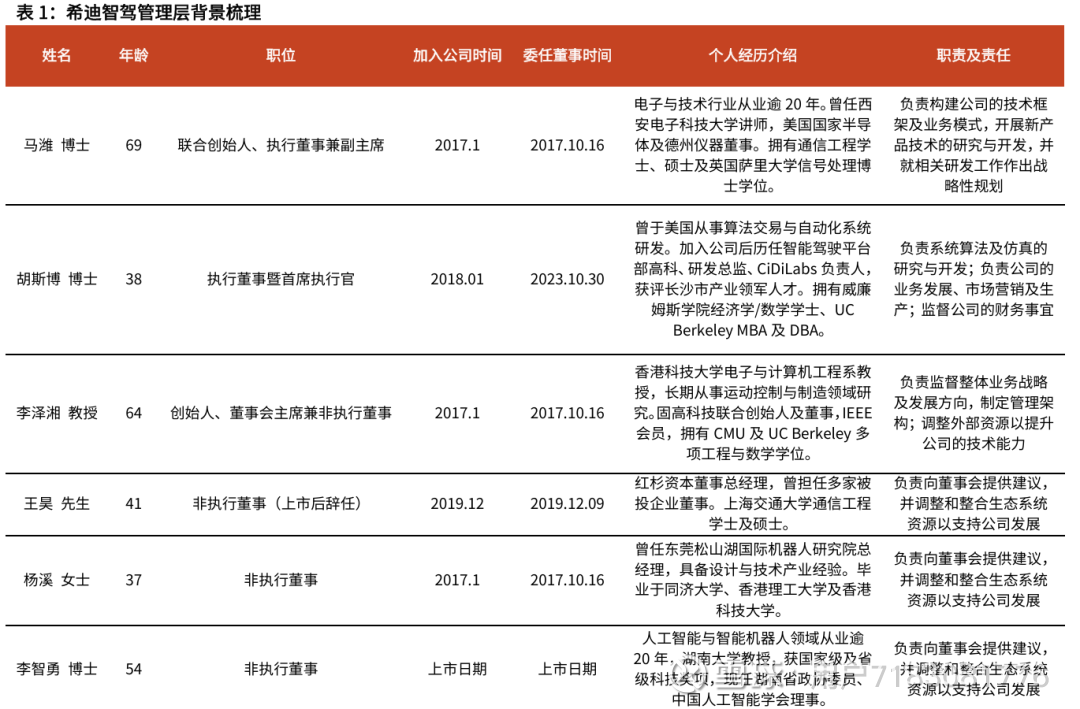 公司管理层兼具深厚专业积淀与多元背景优势,为公司发展提供了核心支撑。核心团队以高学历人才为主体,多位成员拥有博士学位及海外顶尖院校背景(如李泽湘教授、马潍博士等),覆盖电子工程、智能驾驶、计算机等领域,既具备前沿技术研发的专业能力,也拥有产业落地的实践经验;同时,管理层融合了创始团队、产业专家与资本机构背景人才(如红杉资本背景的王昊先生),在技术研发、业务拓展、资本运作等维度形成互补。