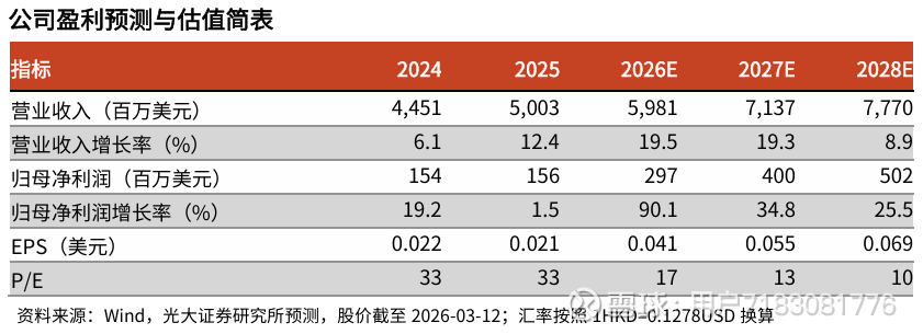 盈利预测、估值与评级:公司全面布局光互联领域,有望打开AI数据中心业务成长空间。我们维持26-27年归母净利润预测为2.97亿/4.00亿美元,新增28年归母净利润预测为5.02亿美元。公司3月12日市值对应26-28年归母净利润分别为17x/13x/10x PE。我们认为公司有望持续受益于AI数据中心及汽车线缆需求增长,维持“买入”评级。