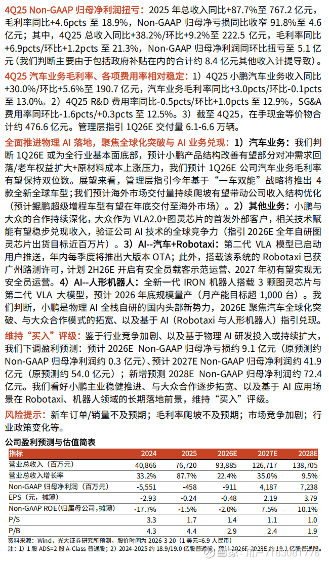 报告标题:《4Q25 扭亏,2026E 聚焦全球化突破与 AI 业务兑现——小鹏汽车(XPEV.N)2025 年四季度业绩点评报告》