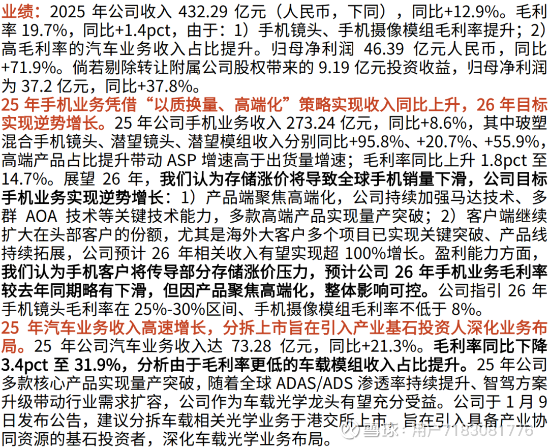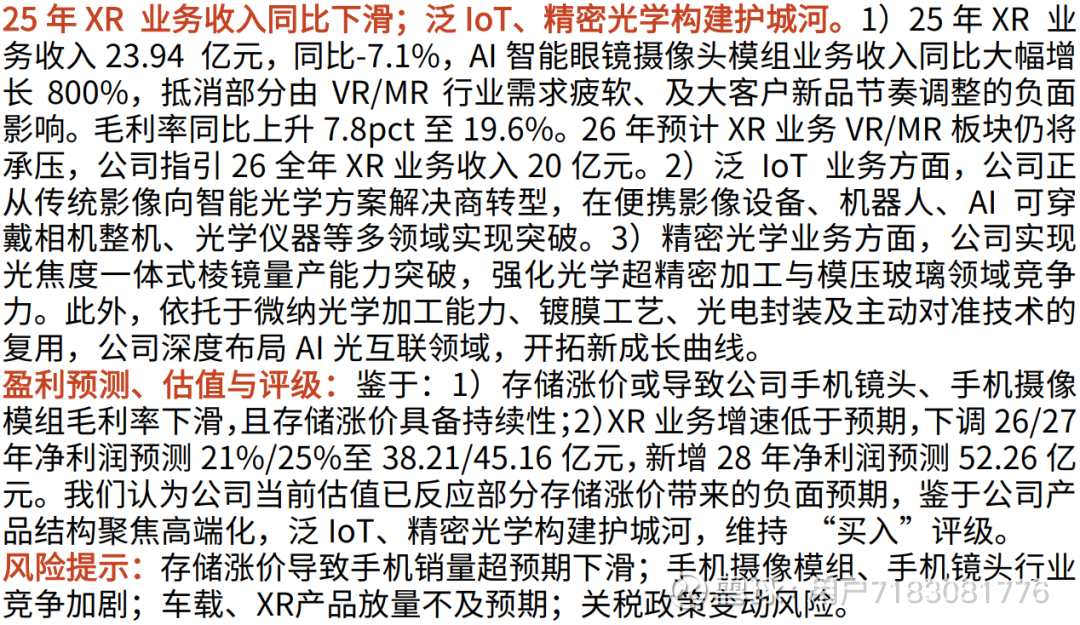报告标题:《26年手机业务目标实现逆势增长,泛IoT、精密光学构建护城河——舜宇光学科技(2382.HK)2025年业绩点评报告》