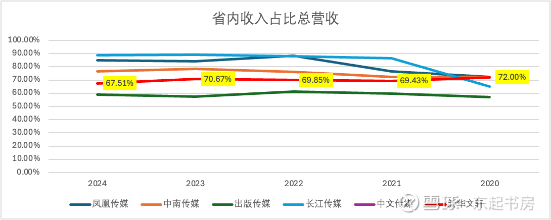 分析这类传媒公司, 我们可以发现一个明显特征,也就是这些传媒公司在本省内的营业收入要占总营业收入的6成以上,个别公司省内收入甚至要占到接近9成。各种原因文章开头有叙述。