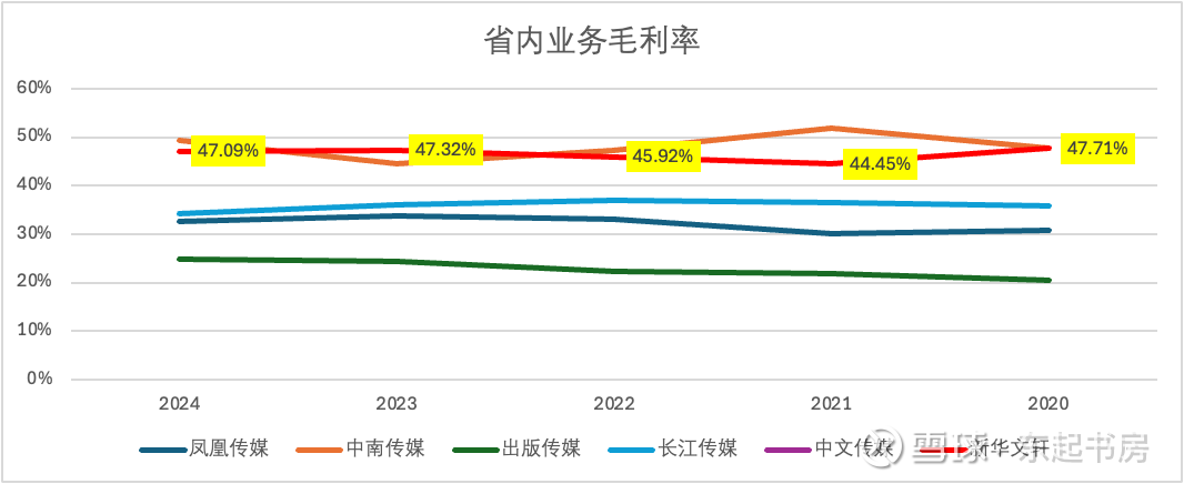 相比之下,大部份传媒公司的省外业务毛利率都在10%-30%区间,只有凤凰传媒例外。